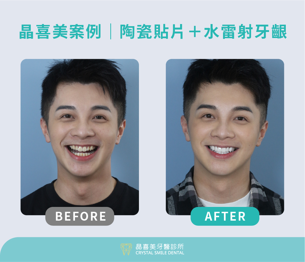 為了找回那份「隨時隨地自信露齒」的底氣,他選擇透過晶喜美陶瓷貼片進行微調,做完陶瓷貼片之後潘先生非常的滿意!現在他的笑容不僅更自然、透亮,更成為了他日常生活中最自信、最長久的「奢侈品」。
